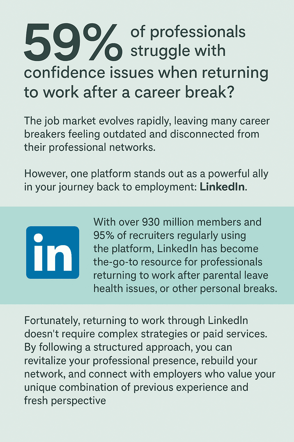 Rather than viewing your career break as a disadvantage, approach it as a unique chapter in your professional story that has prepared you for this next exciting phase. With the right strategy and consistent effort on LinkedIn, your successful return to work is not just possible—it’s inevitable.